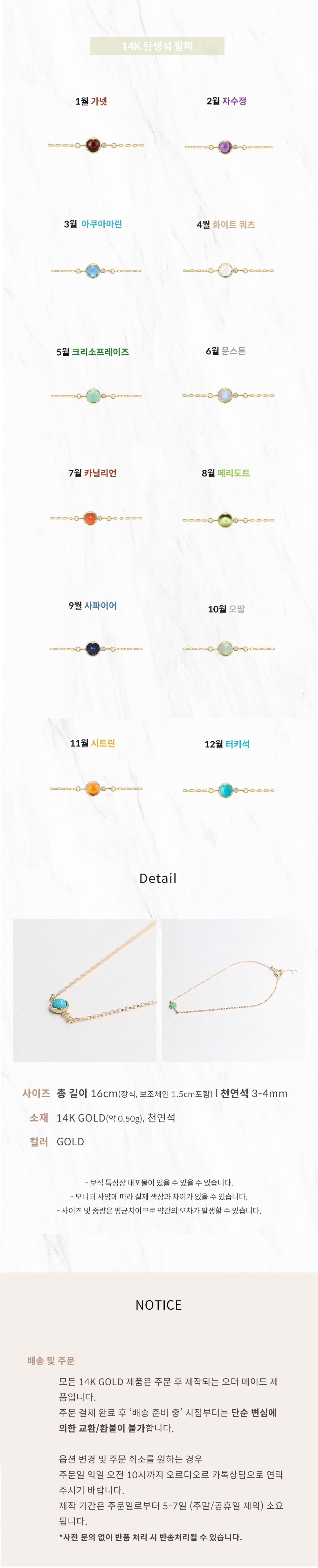 1. 천연석 제품은 등급이 정해져 있지 않습니다. 천연석은 등급이 존재하지 않기 때문에 감정서가 아닌 감별서를 받으며 이 또한 감정원마다 차이가 있을 수 있습니다.