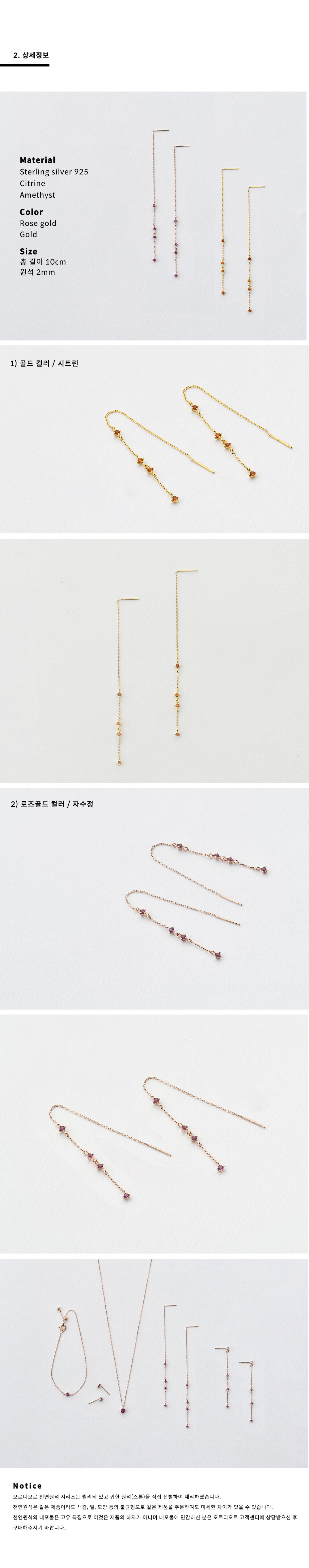 1. 천연석 제품은 등급이 정해져 있지 않습니다. 천연석은 등급이 존재하지 않기 때문에 감정서가 아닌 감별서를 받으며 이 또한 감정원마다 차이가 있을 수 있습니다.